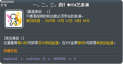 - 经验值增幅效果:第5阶段(80010408)