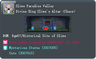 | Slime Paradise Valley | :Divine King Slime's Altar <Chaos> | (160080100)